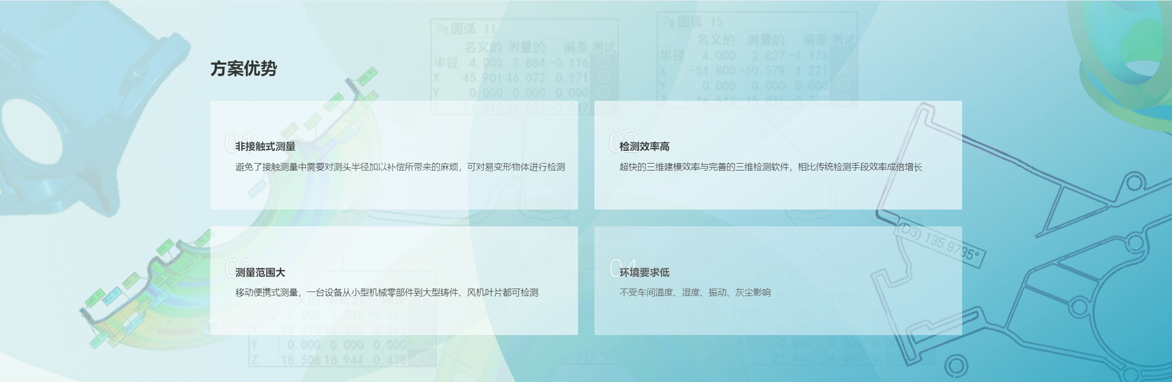 制造业是国民经济的主体,工业零部件质量的好坏是直接影响制造业产品使用性能的重要因素之一,面对越来越激烈的市场竞争,工业零部件生产使用三维扫描来提升技术优势,从而提高产品质量和缩短生产周期等,将成为一种必然。工业零部件的形状比较复杂,有些底面、内部凹槽形状各异,曲面轮廓较多。使用传统的测量方法,如检具、治具、三坐标等,不仅十分繁琐、耗时,而且不易对零部件的结构进行准确、快速地测量、检测。三维扫描技术的出现,给工业零部件检测带来很大方便。它可在不对扫描工件造成磨损破坏的前提下提供可靠、真实的三维数据信息;可将得到的三维数据与三维图纸进行比对,快速准确地获取工件各个位置的偏差,从而基于比对结果给出修正方案;对于扫描死角少,复杂的曲面,同轴度,圆柱度等用传统方法难以获取检测的数据,也都可以轻而易举地获取;同时,快捷的扫描也可以提高检测的效率,减少时间和人力成本。